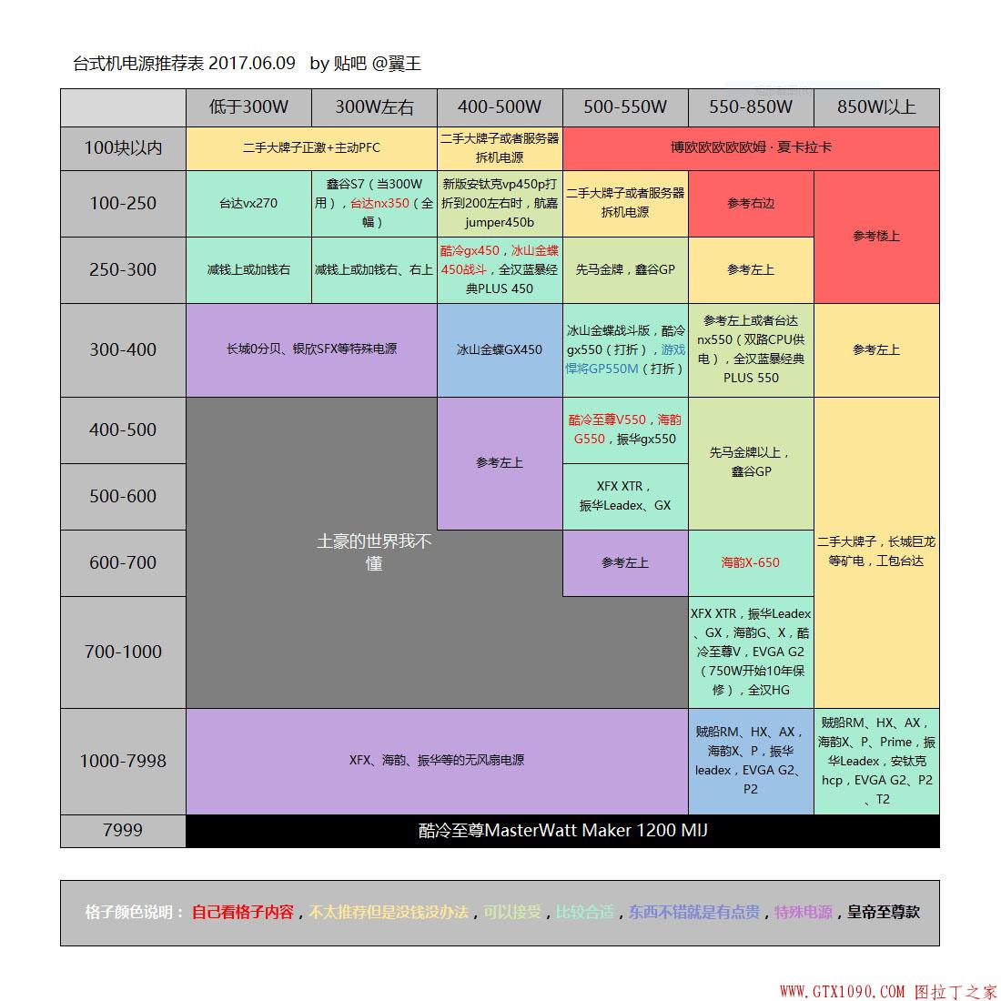 理论上在其他硬件功率不大的情况下,根据显卡的功率就可以来选择电源了!!!
