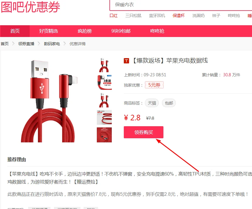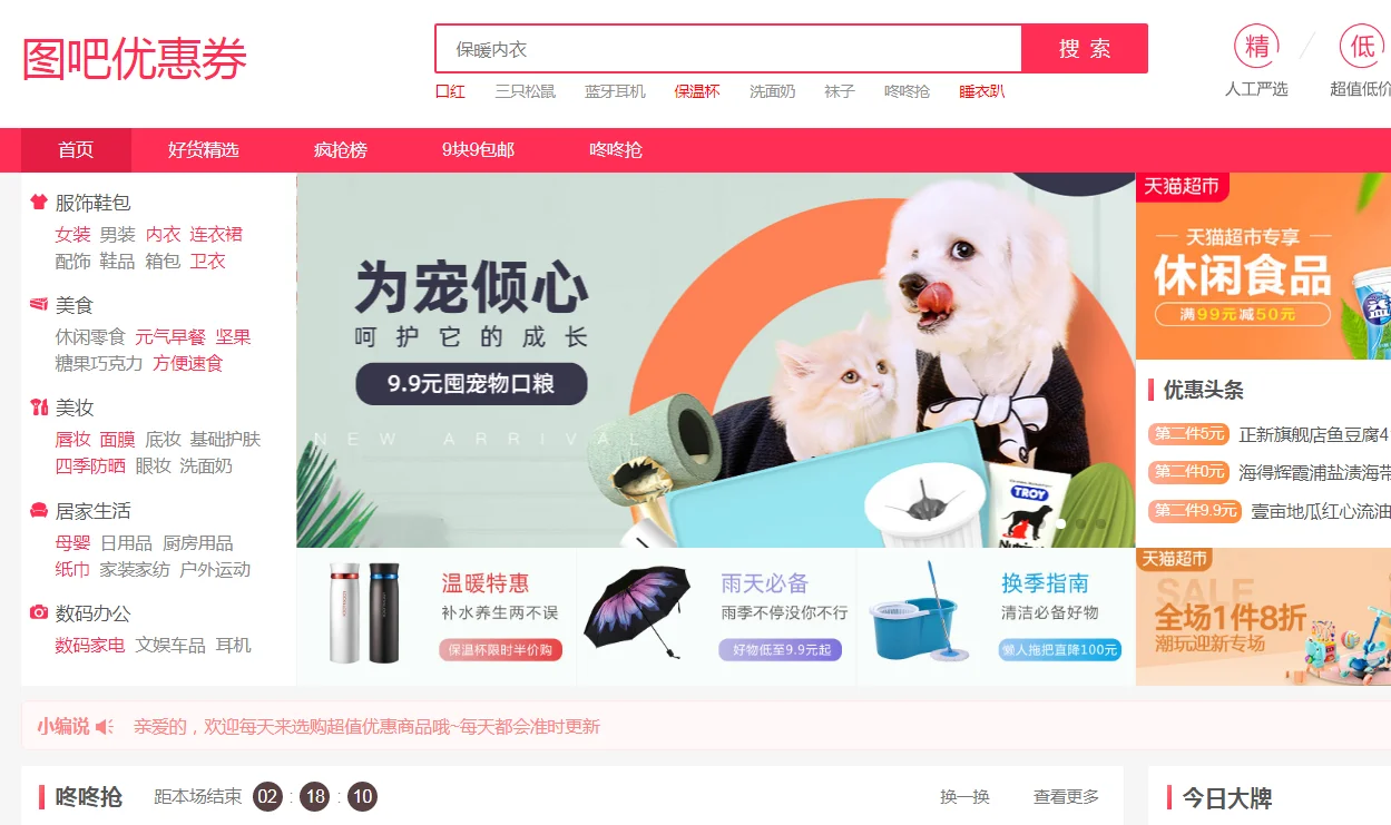 进入优惠券网站之后可以搜索商品或者首页推荐的羊毛。