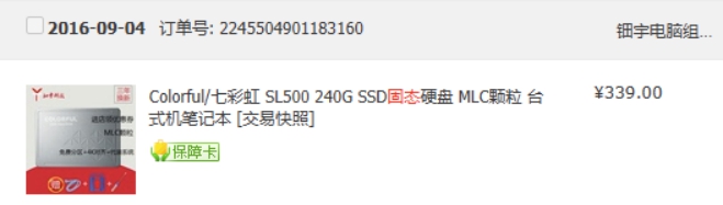 首先是sata接口的七彩虹SL500,没错这还是MLC颗粒的,在2016年还是挺多可以选择的。1块4/G