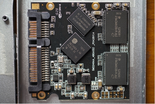 慧荣2246EN+南亚DRAM+32层英特尔MLC,容量小了只有8CE,估计同方案480G本版能跑满速了。(翻文档2246EN极限顺序写入是487 MB/s )